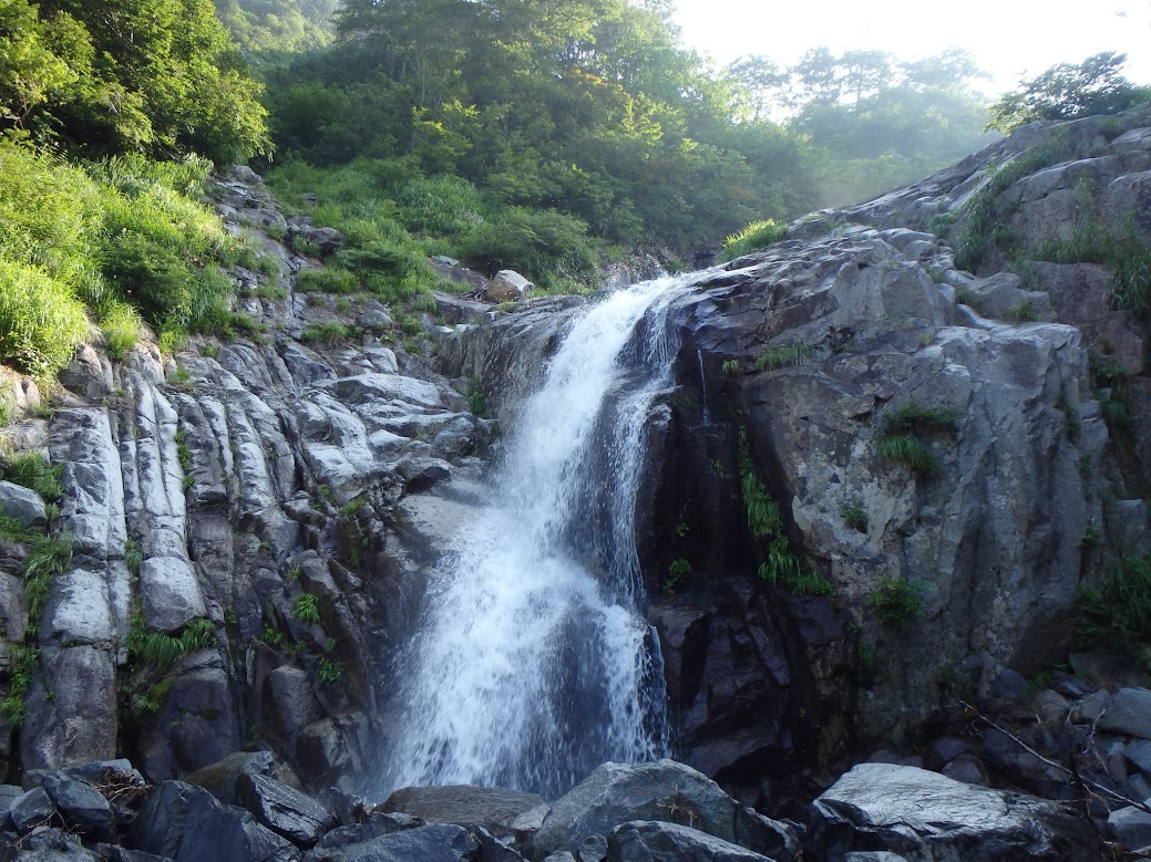 巻機山からの下山は、樹林帯に入ると景色が変わらず、しかも一番暑い時間帯。こんな時こそ釜に飛び込み、滝に打たれたいと思いますが、時既に遅し。