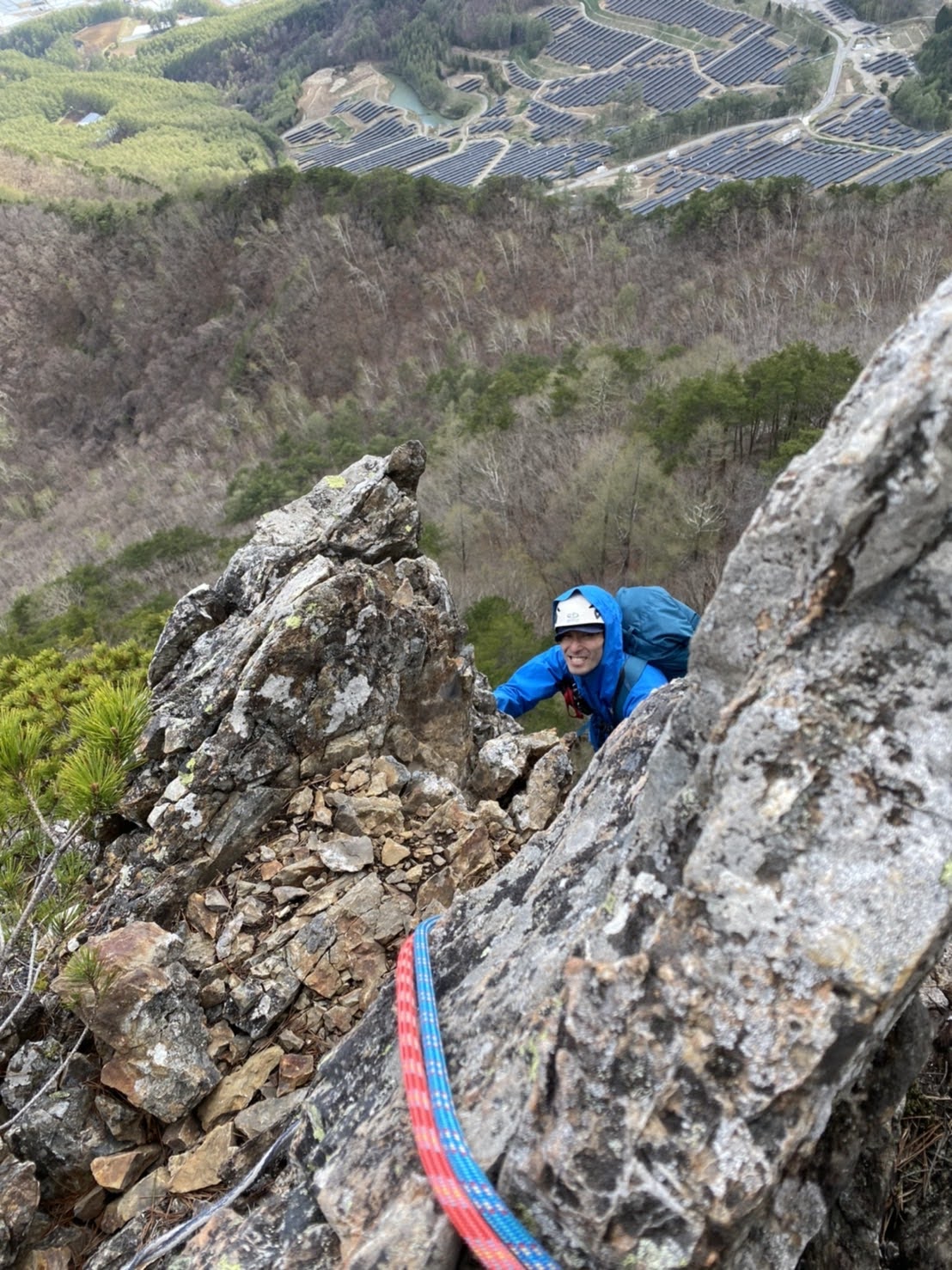 最初は僕がリードで、ほぼ歩きのようなところを登っていき、とりあえずピッチを切る。
