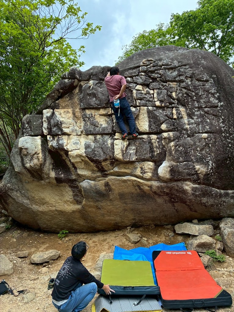 さらなる課題を求めて扇岩、汚い大岩とツアーをし、初めての外ボルダーのメンバーもお腹いっぱい楽しむことが出来た。